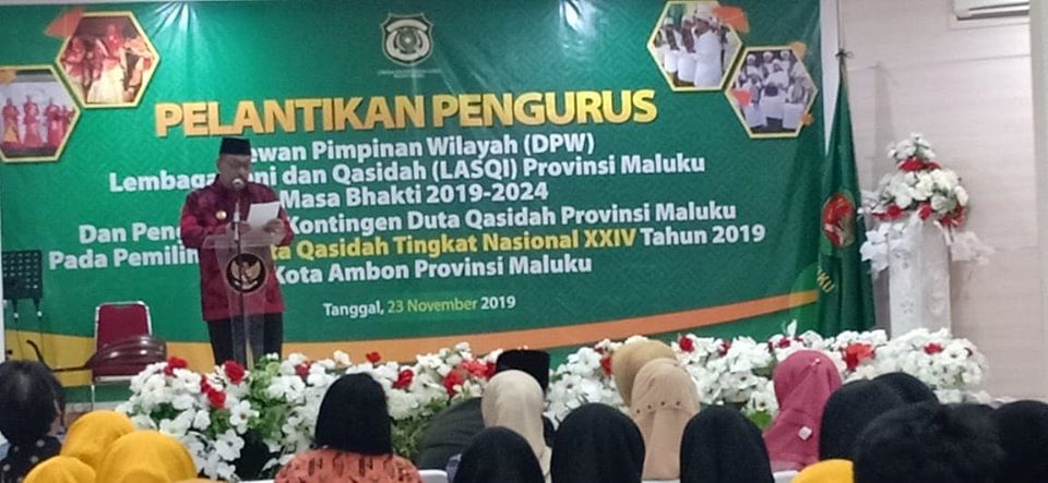Ambon,- Gubernur Maluku, Irjen Pol (Purn) Murad Ismail melantik Dewan Pengurus Wilayah (DPW) Lembaga Seni Qasidah (LASQI) Provinsi Maluku masa bakti 2019-2024, Sabtu (23/11/2019).