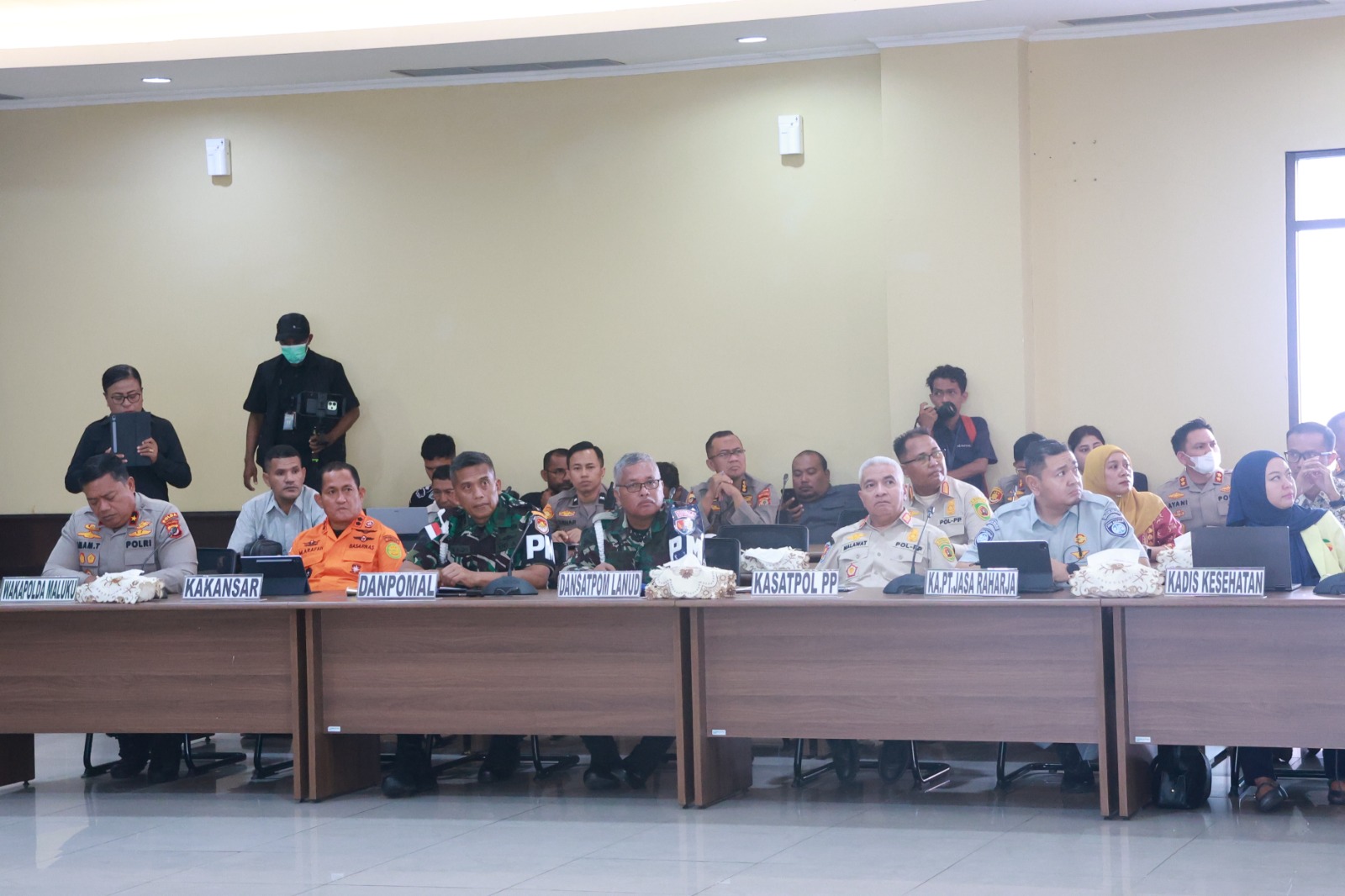 Kegiatan tersebut merupakan bagian dari upaya koordinasi lintas sektor untuk memastikan kesiapan seluruh pihak dalam menjaga stabilitas keamanan serta kelancaran mobilitas masyarakat selama arus mudik dan arus balik Idul Fitri di wilayah Maluku.
