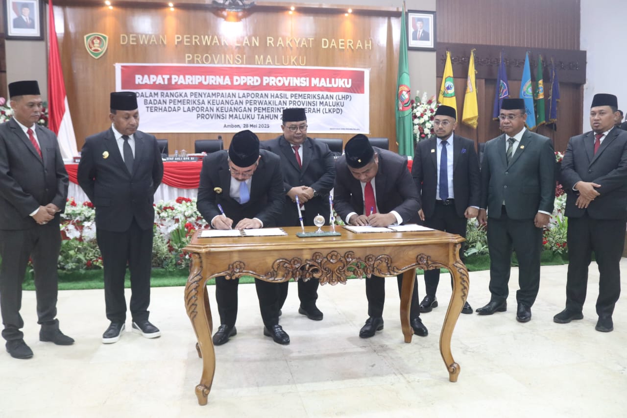 “Saya mengapresiasi peran DPRD Provinsi Maluku yang telah menjalankan fungsi pengawasan secara optimal, terhadap pelaksanaan Peraturan Daerah dan Pengelolaan APBD, untuk itu sinergi antara Pemerintah Daerah dan DPRD sangat penting dalam memastikan pengelolaan keuangan daerah yang trasnparan, akuntabel, dan sesuai dengan ketentuan peraturan perundang-undangan yang berlaku,” ucapnya.